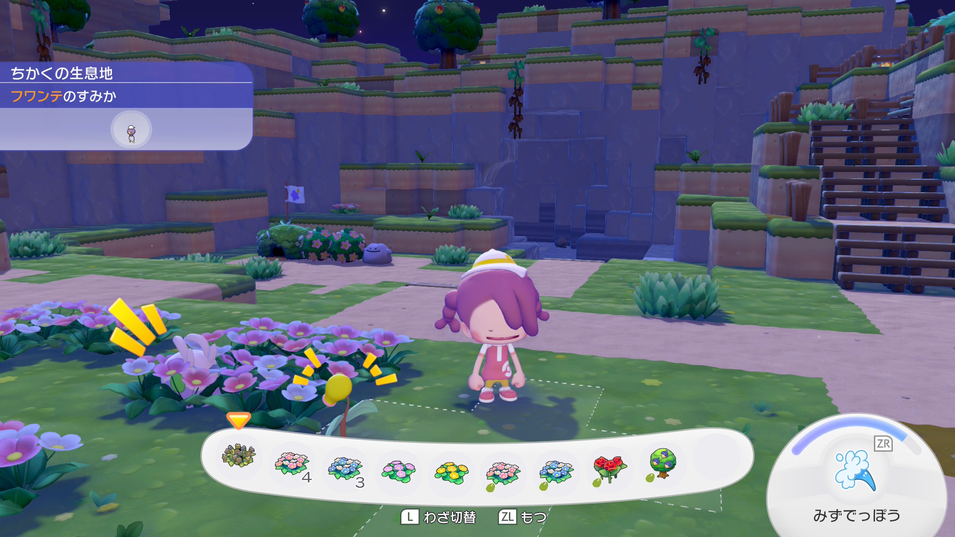 ドロはこういう系ゲームで花が好き。必ず家のそばに植えたり、全種集めたり、お花摘みをする