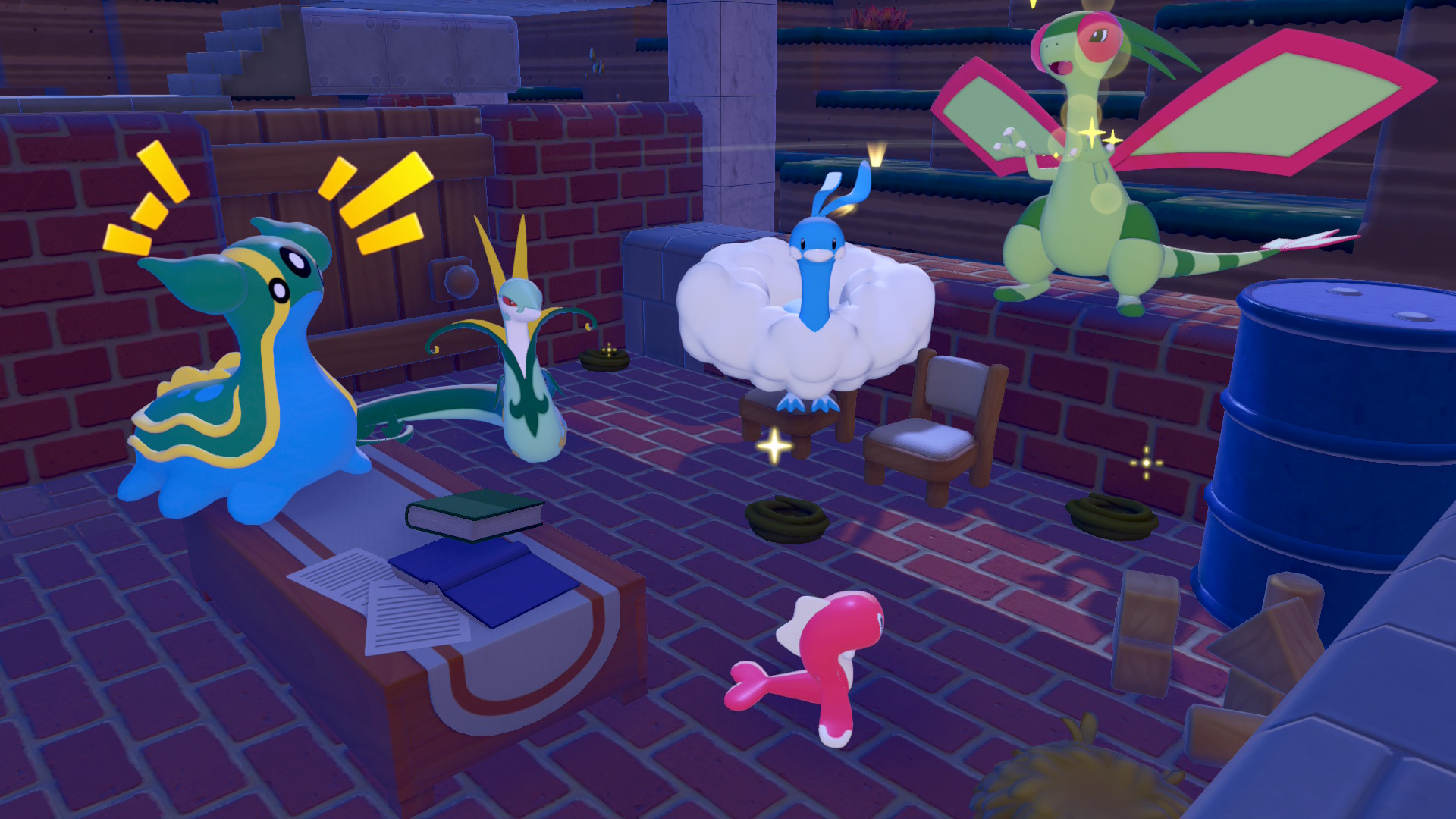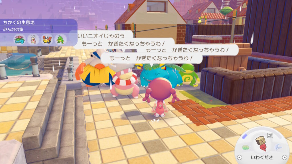 キラキラは労働ポケモンで、パサパサとゴツゴツは25人前後にしておき、まっさらに好きな子、残りは全部ドンヨリに住ませることにしてる。港町の景色が一番、いろんなポケモンが映えるから。