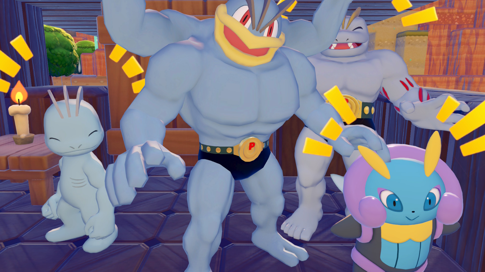 フシギバナ、ヤドキング、ニョロトノのおばちゃんトリオとハリテヤマの4人部屋もある