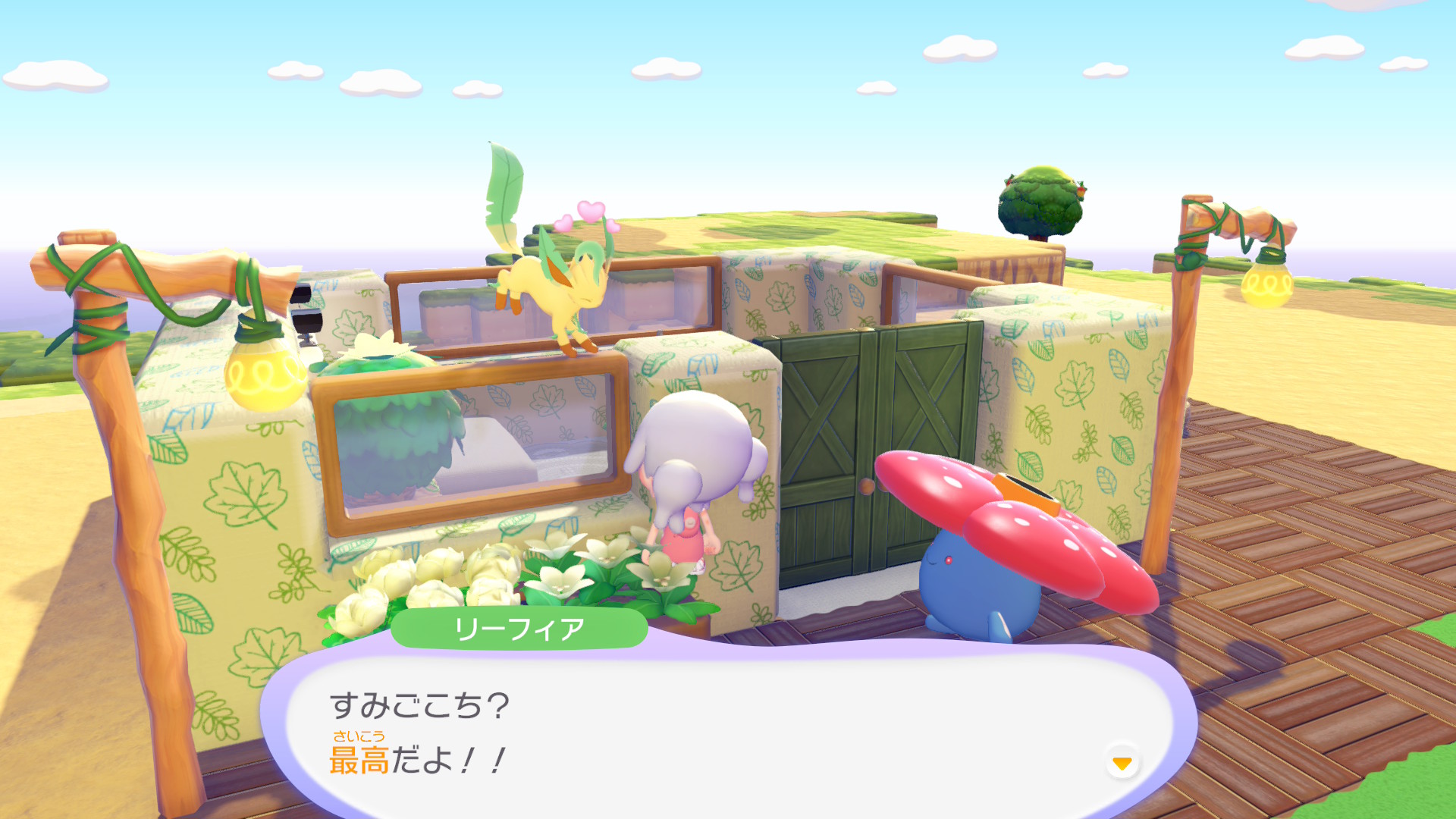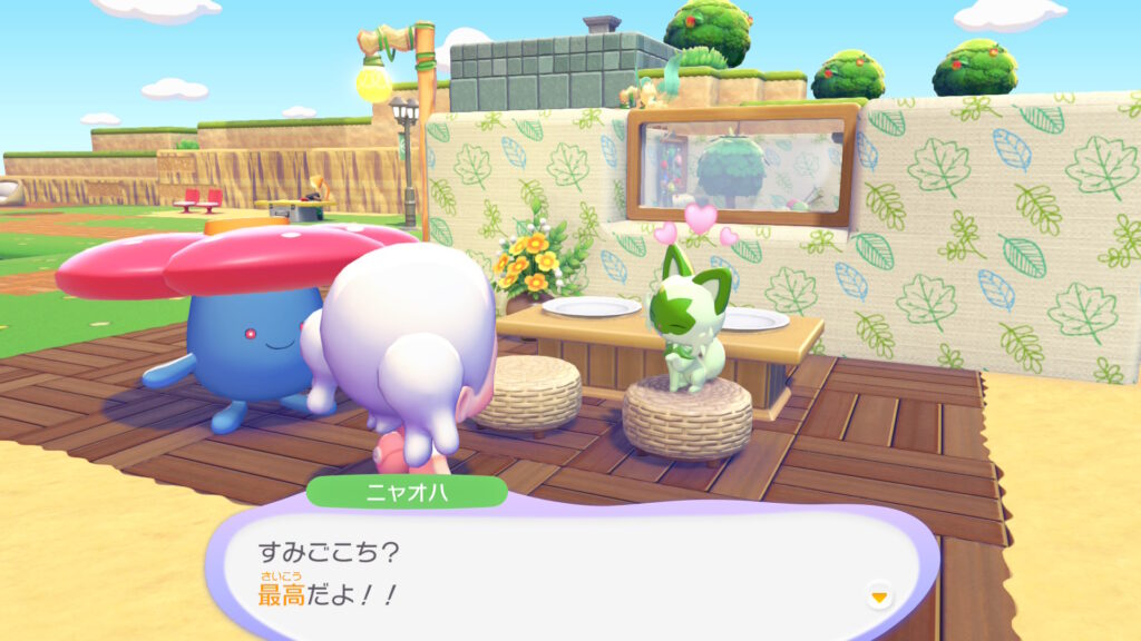ニャオハとリーフィアのお家、すみごこちが最高だと言ってくれて嬉しい