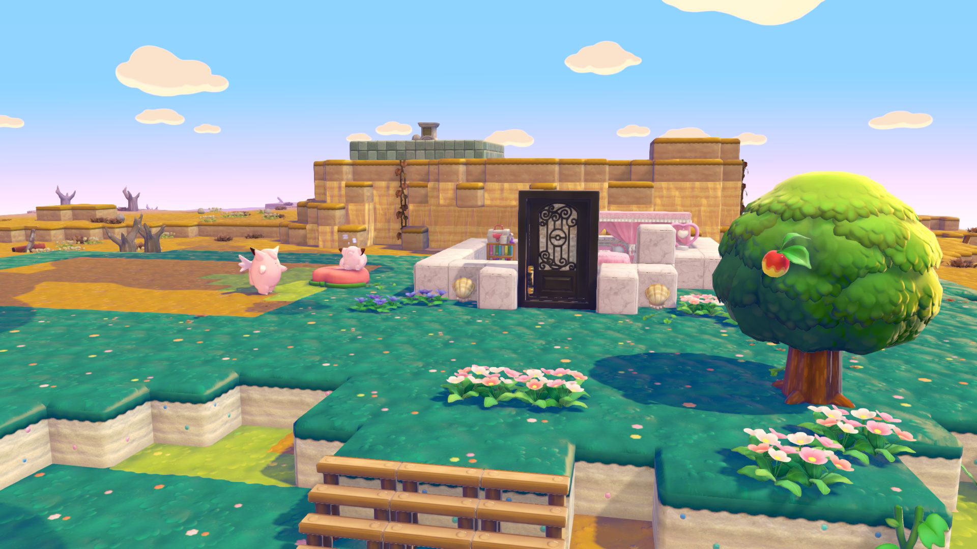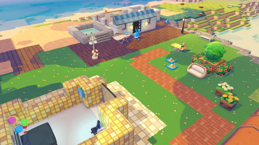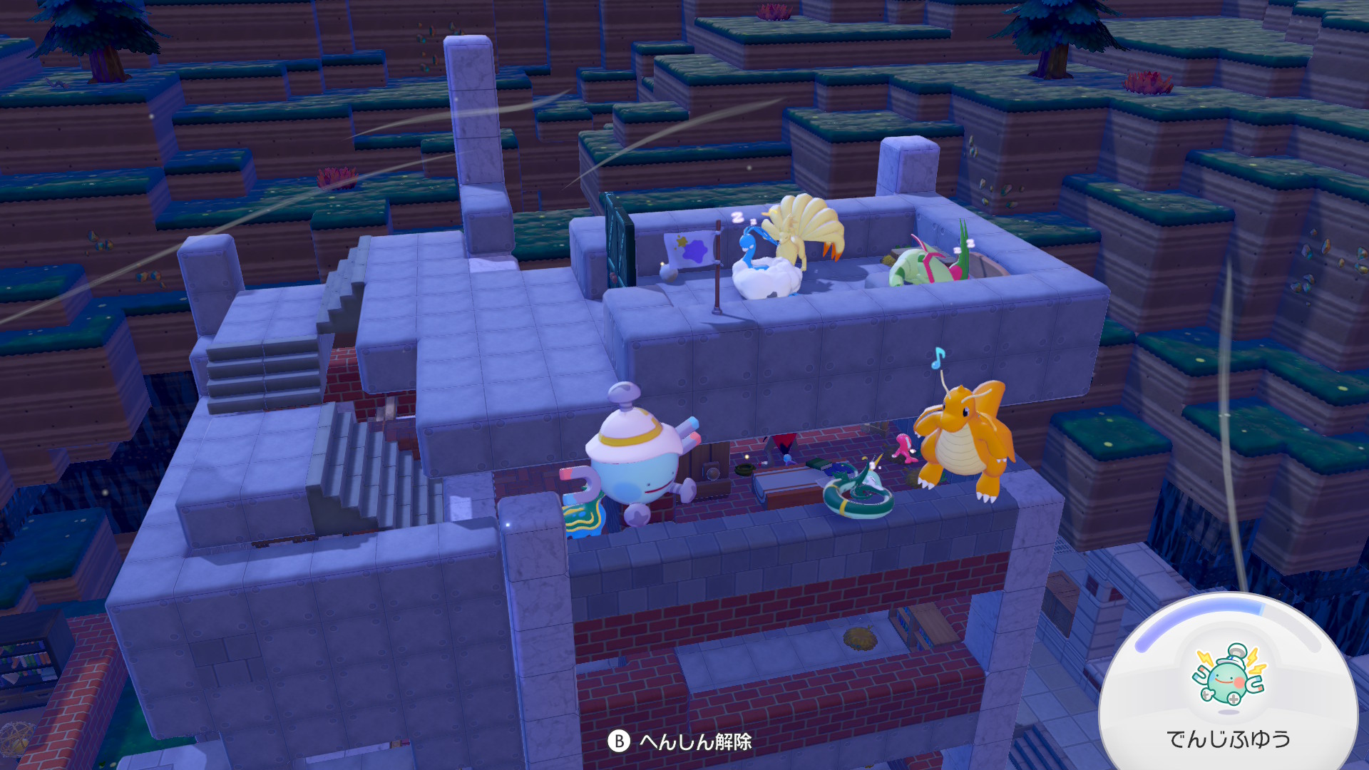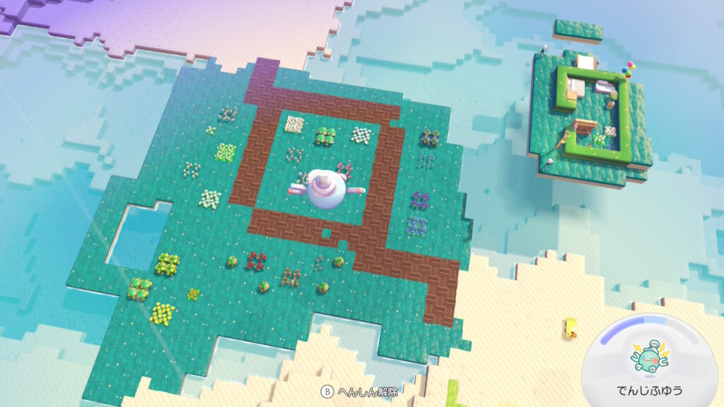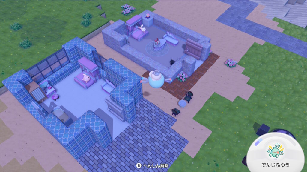 右のはニンフィアの家。クラッシュタイルを白に染色したらコスメみたいに可愛いかけらになったのでそれを使ってる