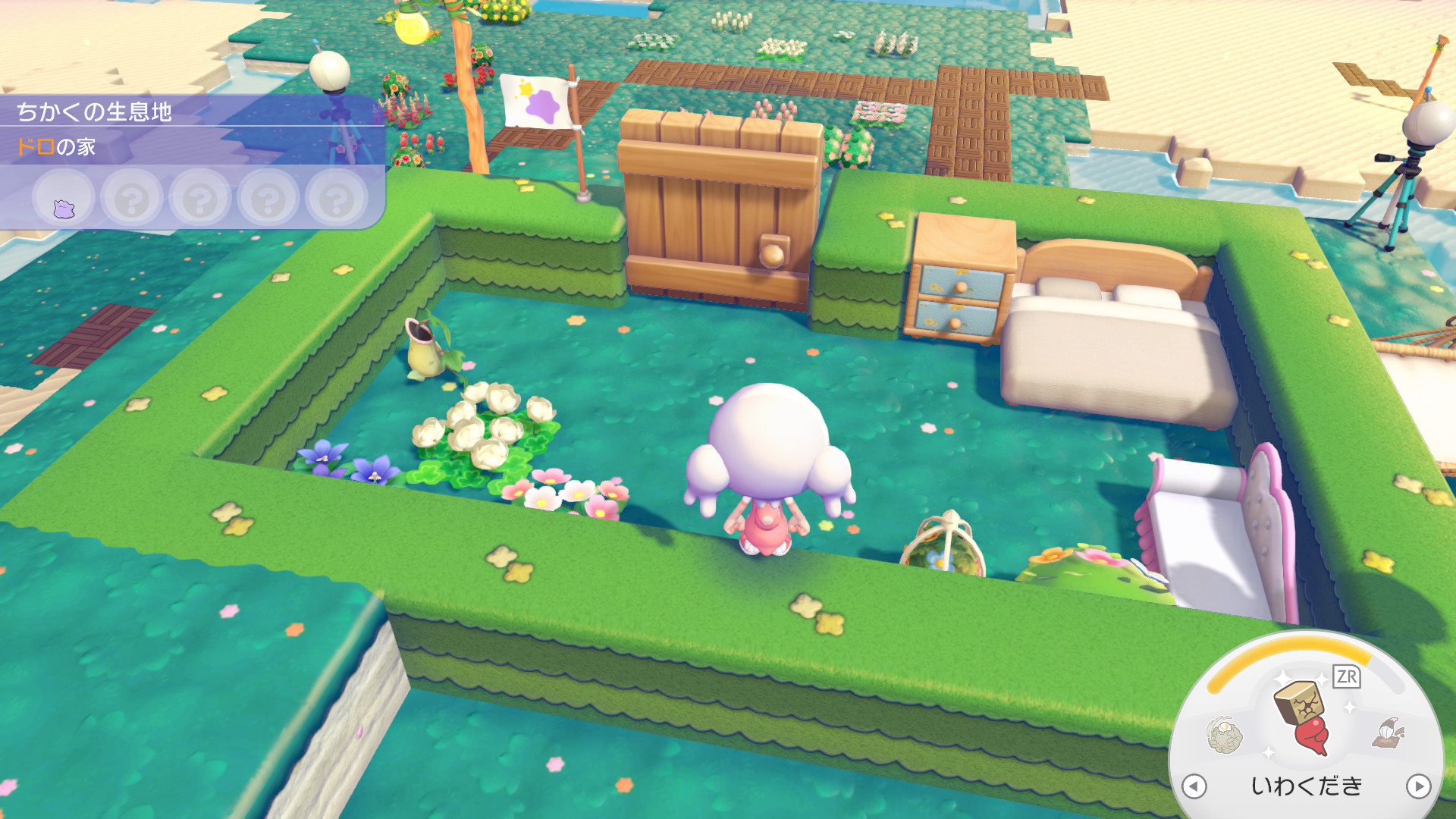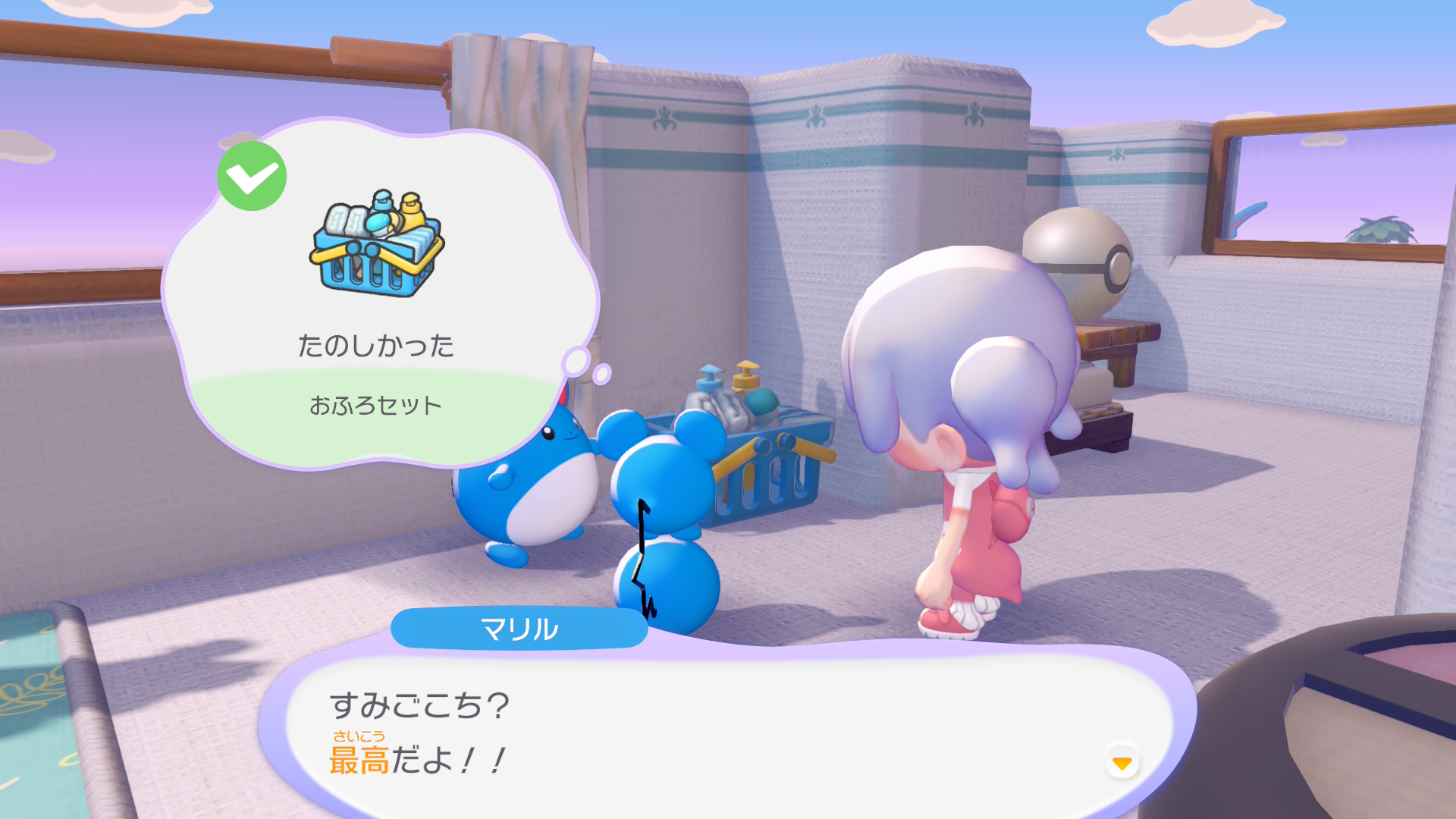 マリンっぽいのがマリルリたちの家。しめったいわを置いてあげた