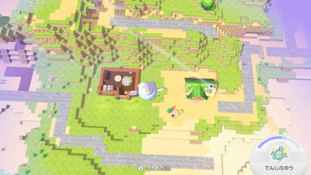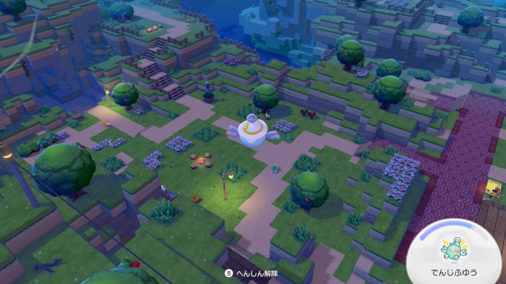ポケセン右の高台。ポケセン前の野原にかわいいちいさいポケモンを集めてるからそこにすぐいける。お隣さんにポリゴン、デンヂムシ、サンダースの電気的ポケモンがいてかわいい